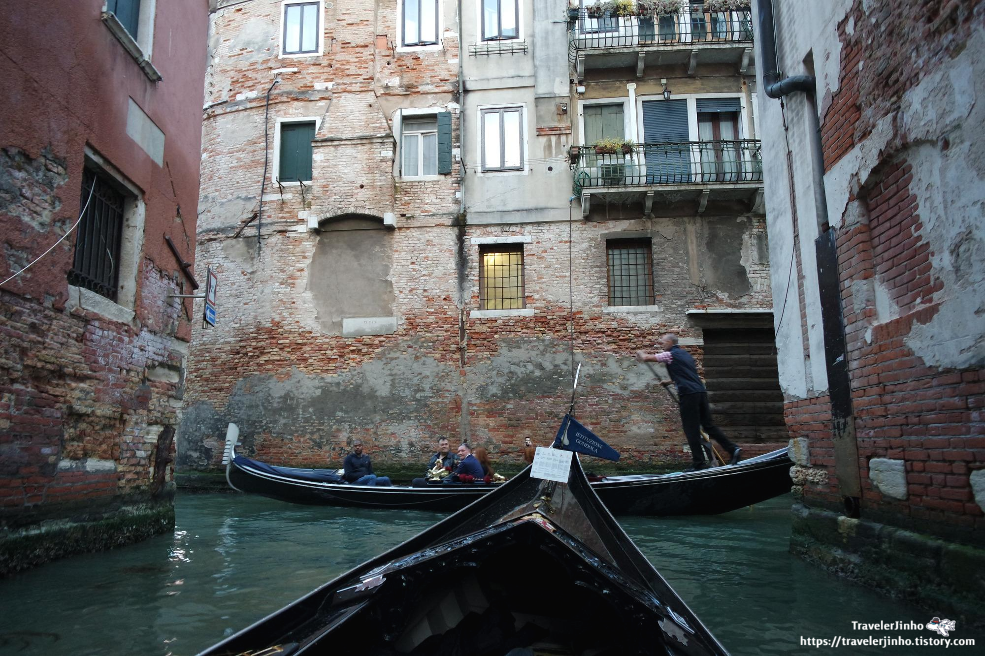 그리고는 좁은 수로로 들어가는데 사실 맑지 않은 날씨와 물색에 감흥은 반감되었고 곤돌리에는 담배도 피웠다.