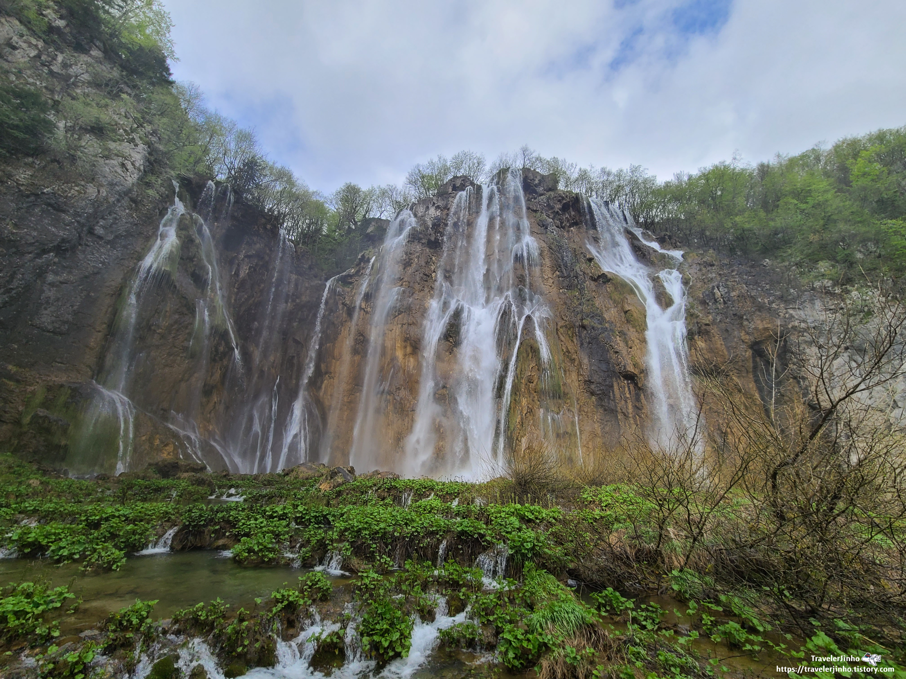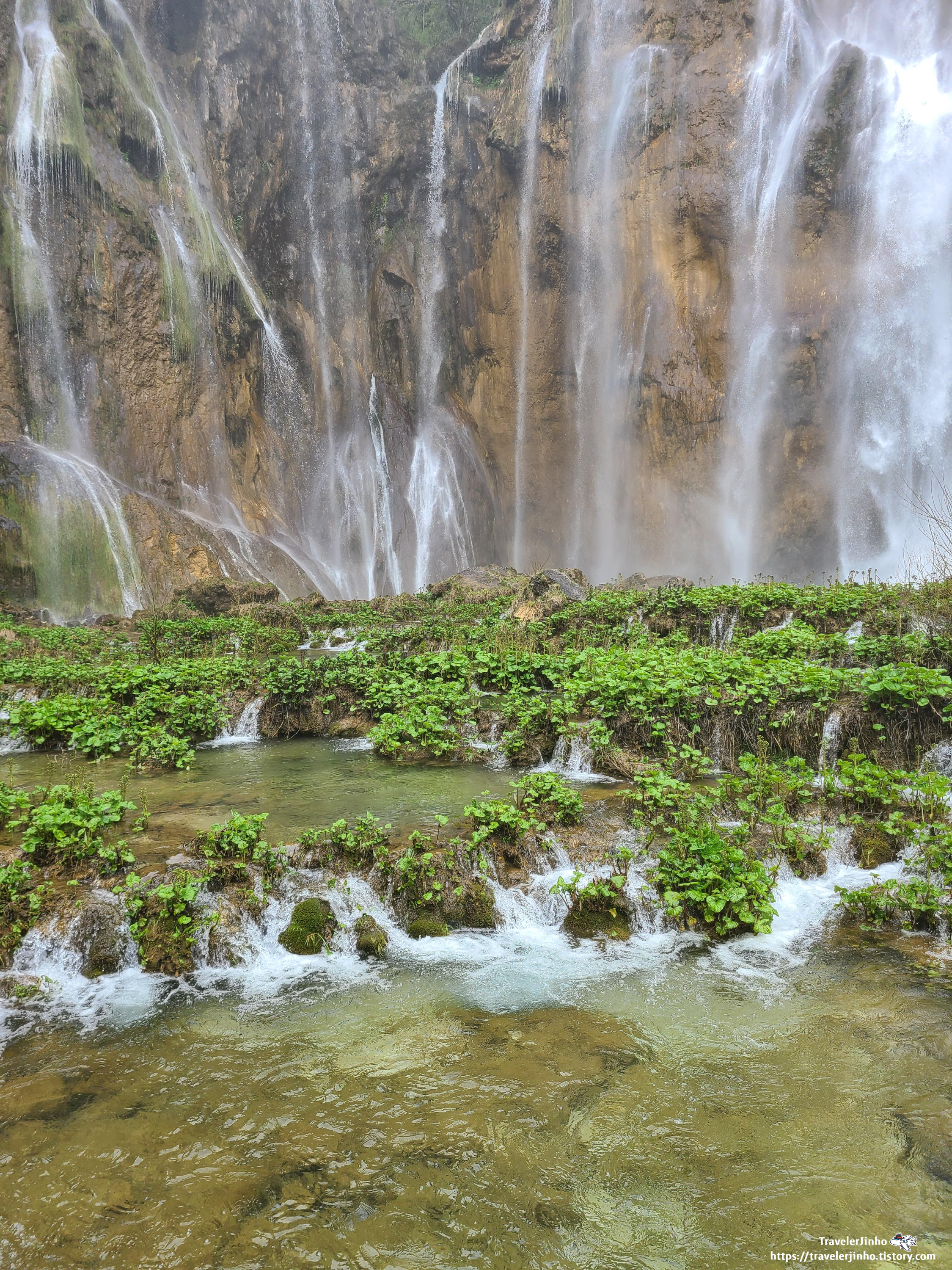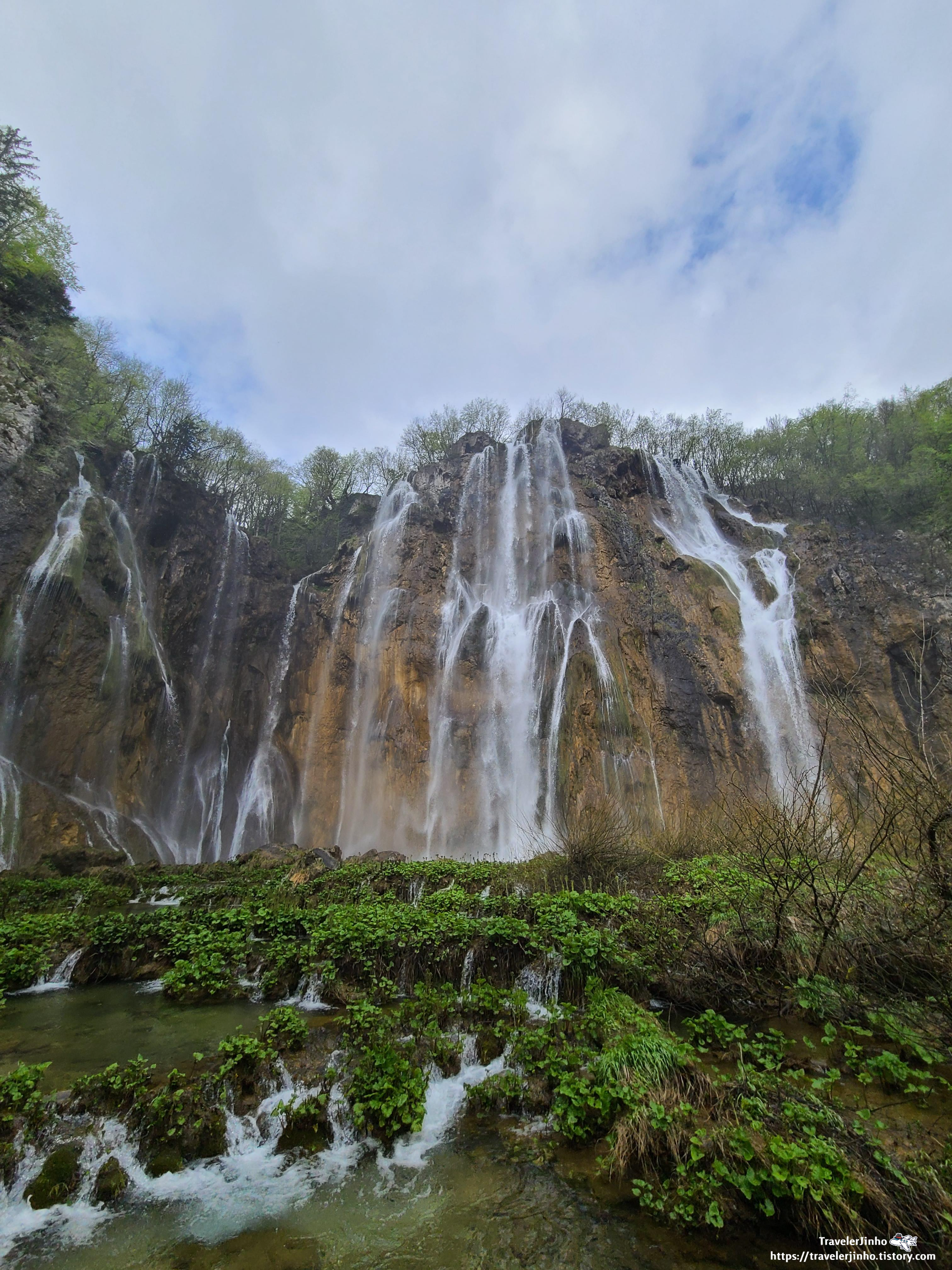 벨리키 슬라브 대폭포는 한 덩어리로 떨어지는 게 아닌 여러 갈래의 물줄기가 바위와 풀 사이로 갈라지면서 떨어져서 여러 가닥의 실로 연결된 것 같다.