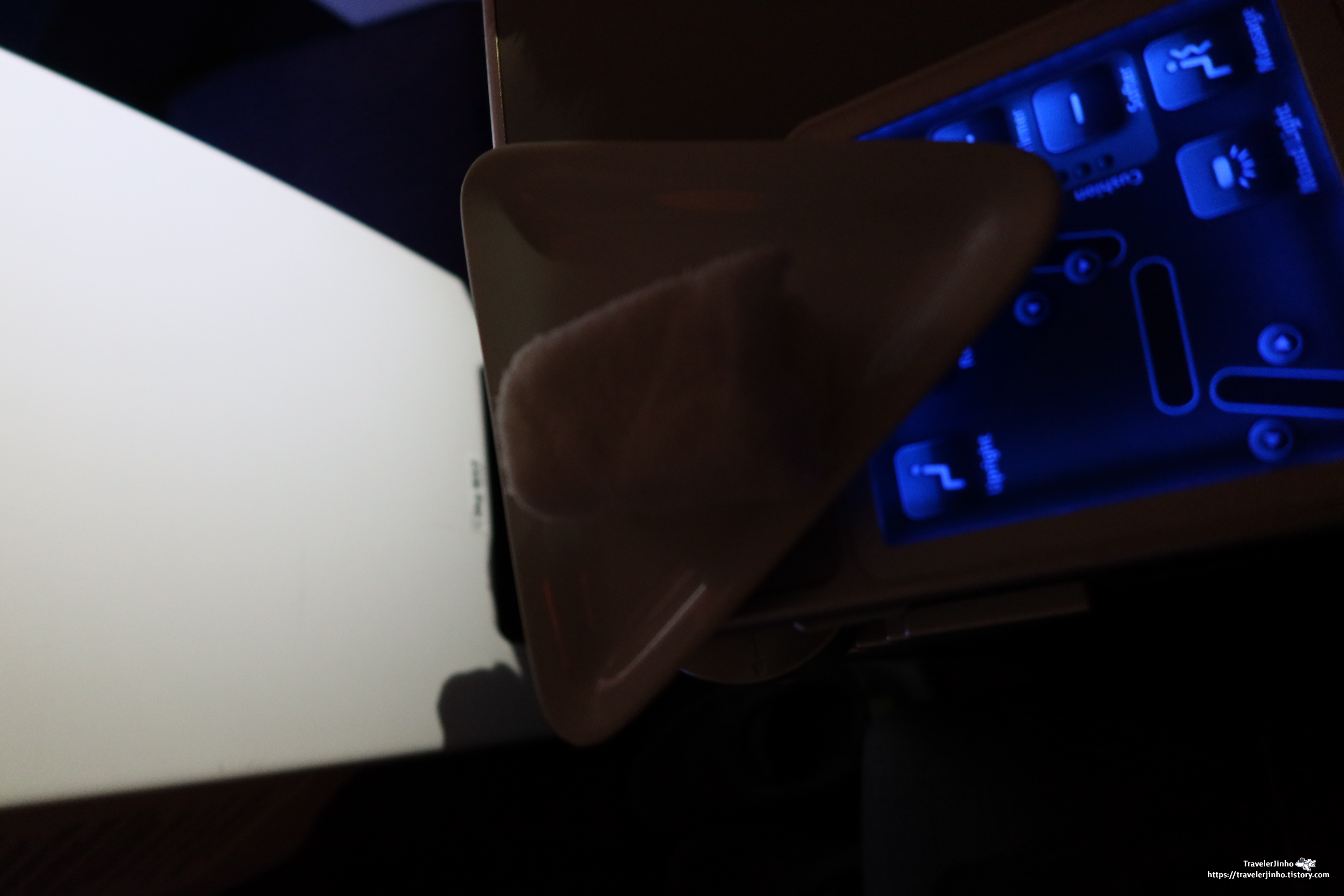 좌석은 180도까지 펼칠 수 있도록 되어있고 좌석 옆에 컨트롤러가 있다.
