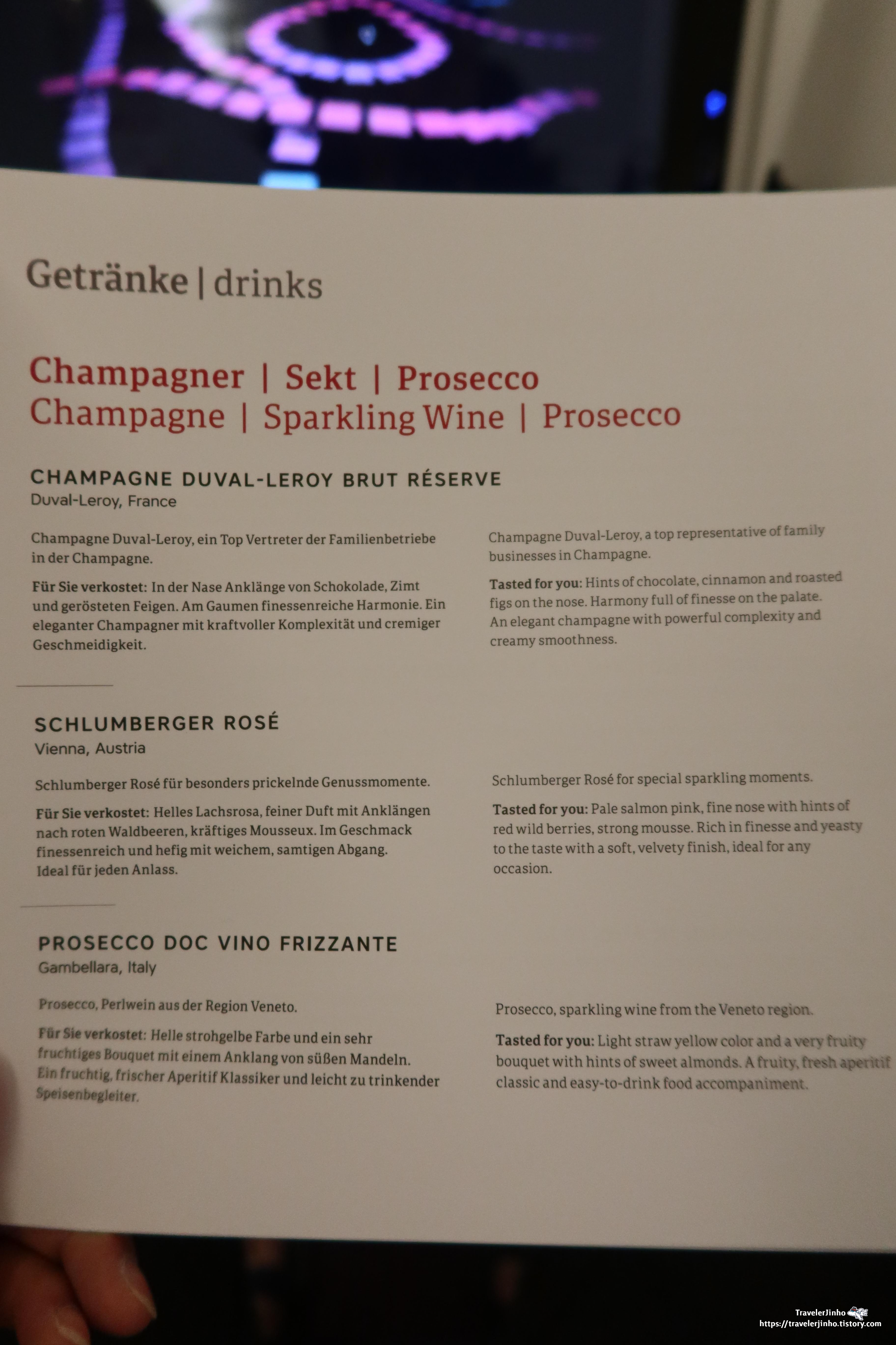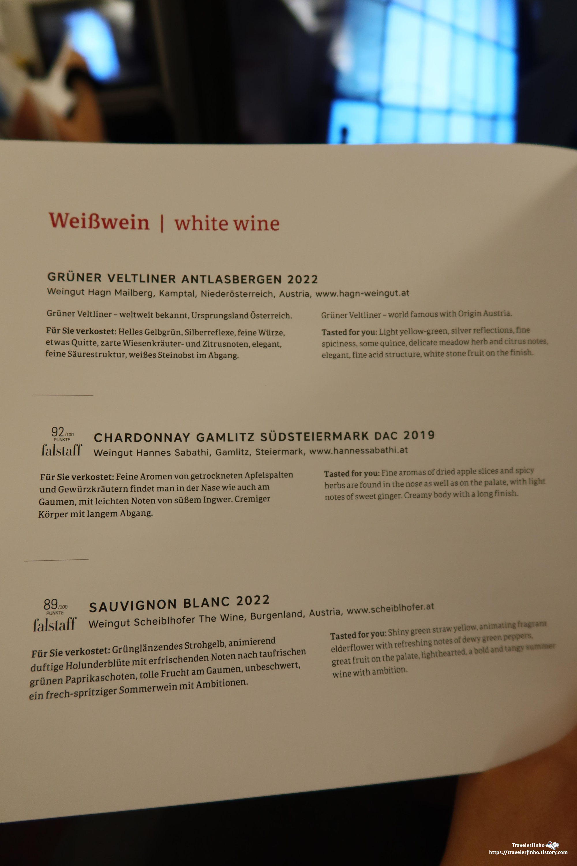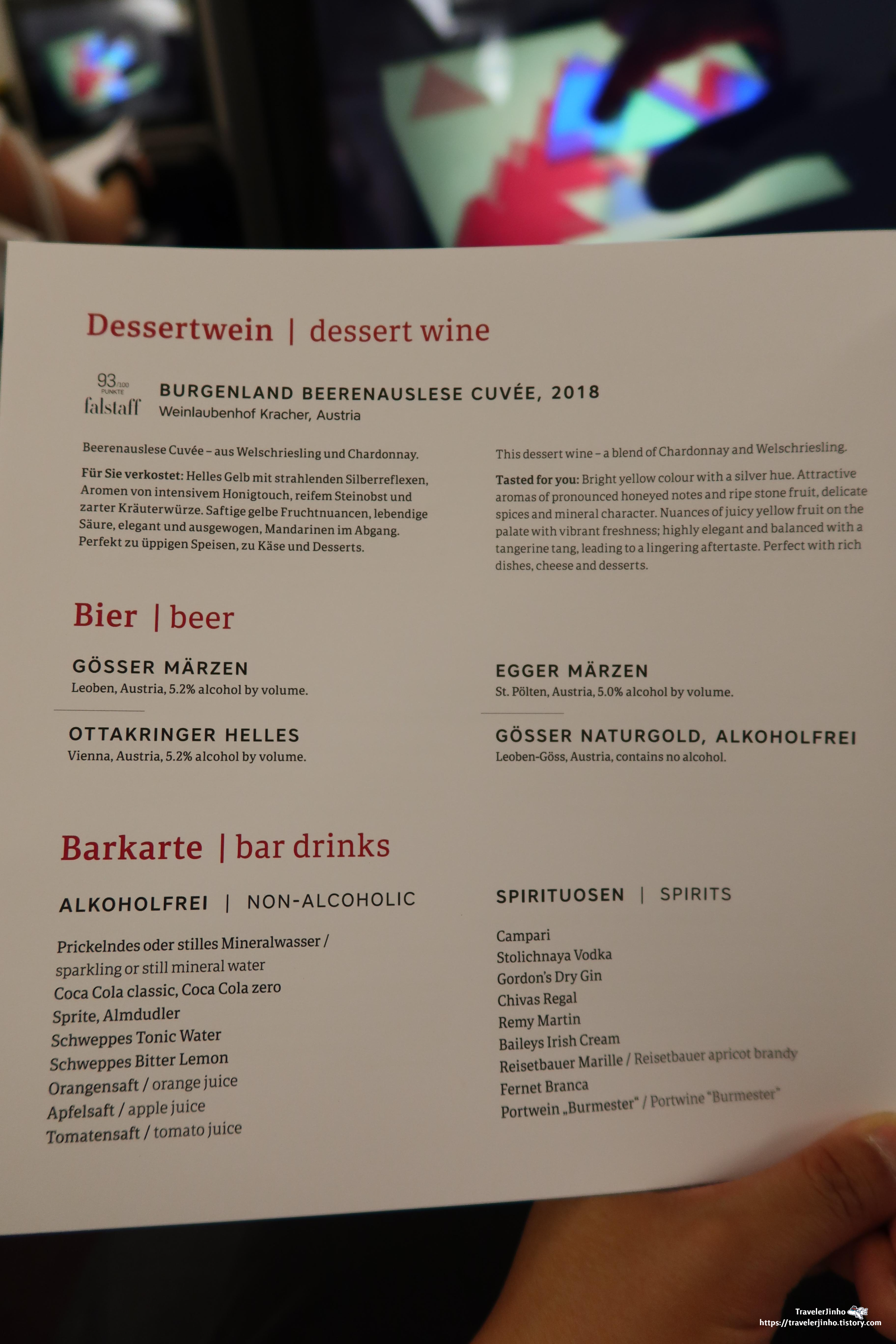 마셨던 프랑스 와인은 그 자체가 디저트 느낌이었고 오스트리아항공에서 마신 와인은 함께 나온 디저트와 잘 어울리는 느낌이었다.