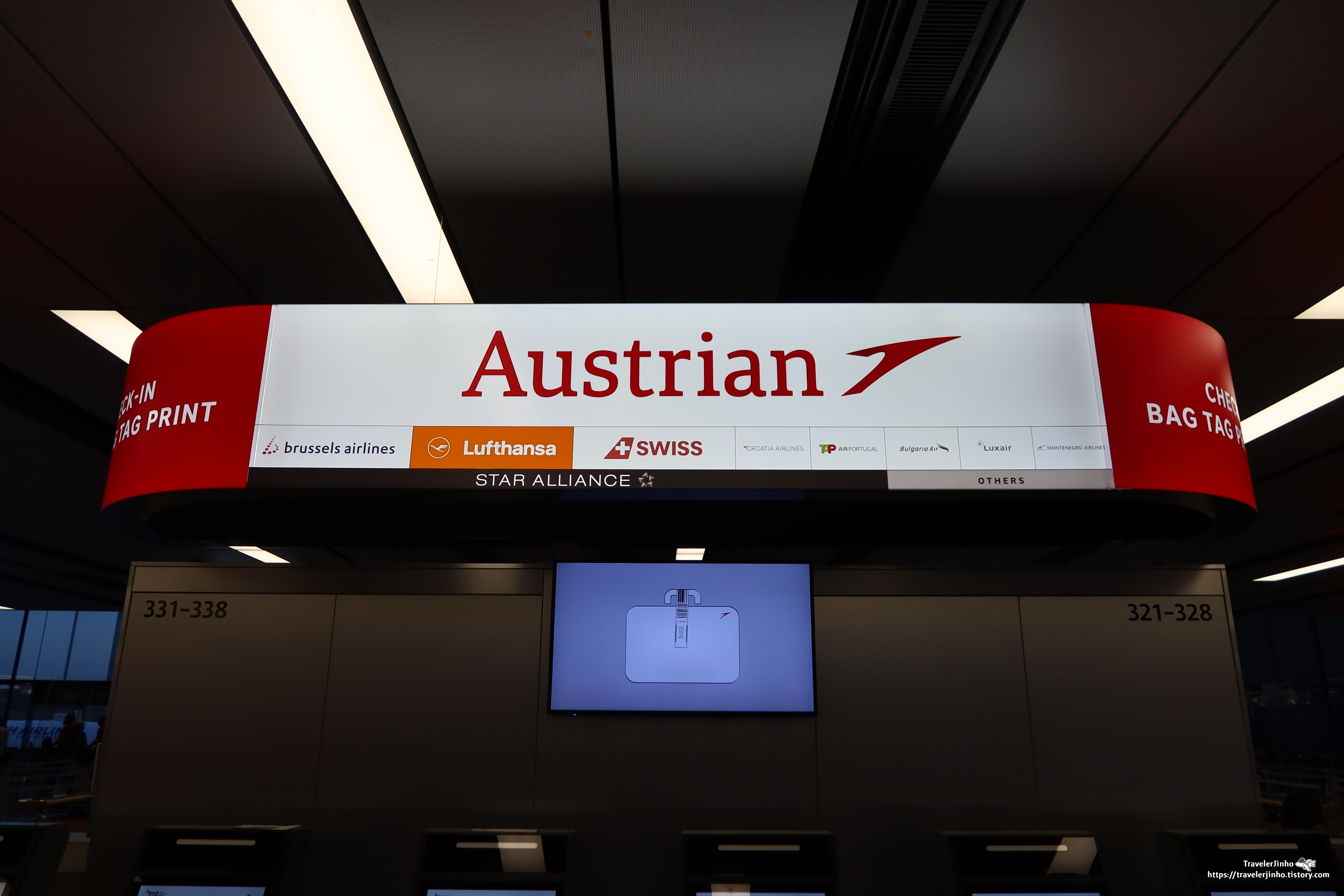 비엔나 국제공항에 출발층에서 오스트리아항공 카운터를 찾아갔다.