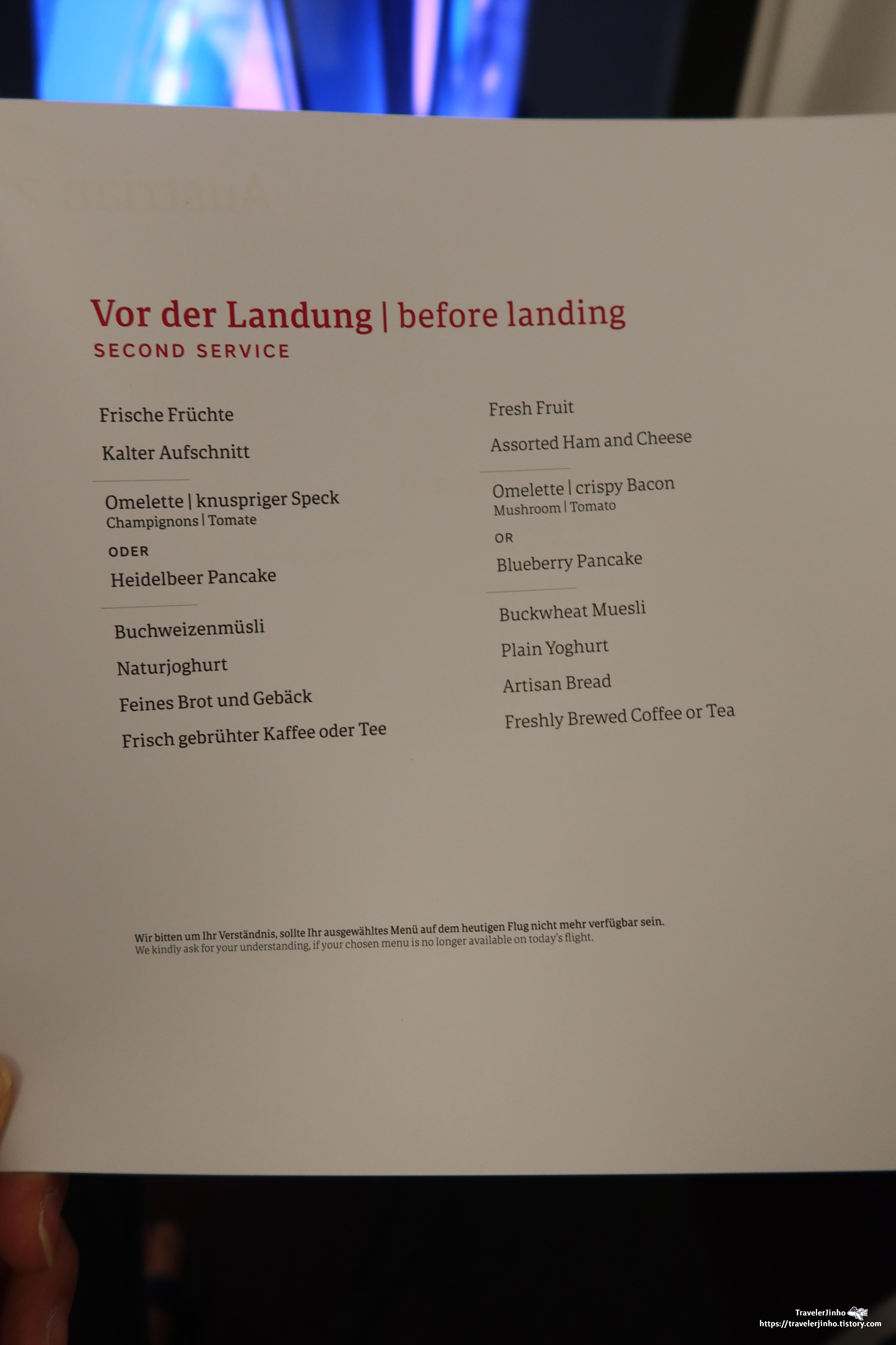 아까 중년 남성승무원이 이 메뉴는 비엔나로 올 때 메뉴라고 확인해 주었는데 가능한지 확인해 보겠다고 하셨다.