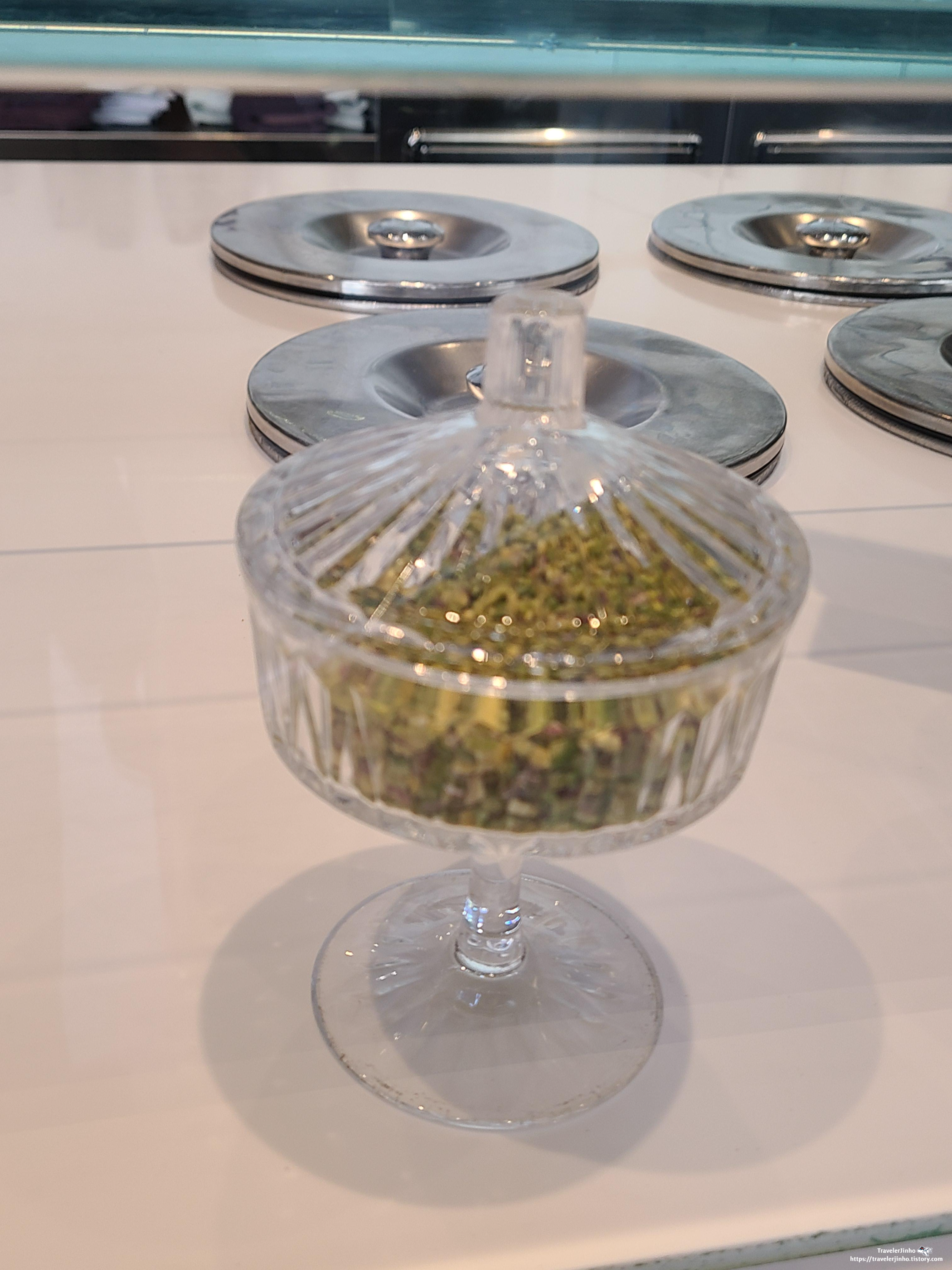 젤라토는 뚜껑으로 덮인 상태로 진열되어 있다.